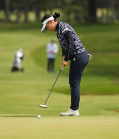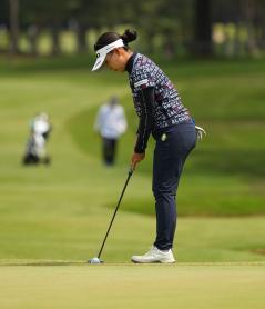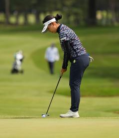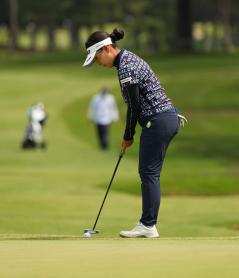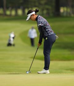 青木瀬令奈のパッティングストローク(前方)|フォロー①