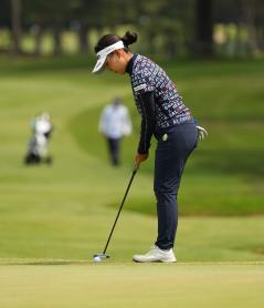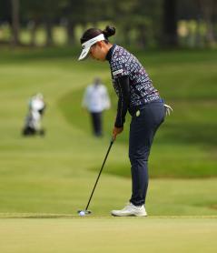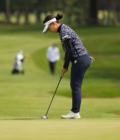 青木瀬令奈のパッティングストローク(前方)|フォロー③