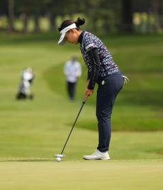 青木瀬令奈のパッティングストローク(前方)|フォロー②