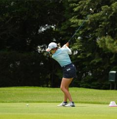 大西葵のドライバースイング(斜め前方)|フォロー②