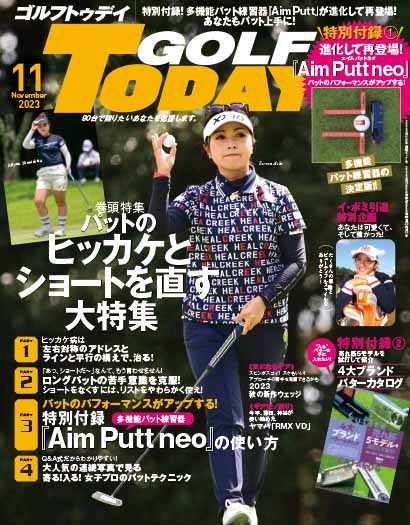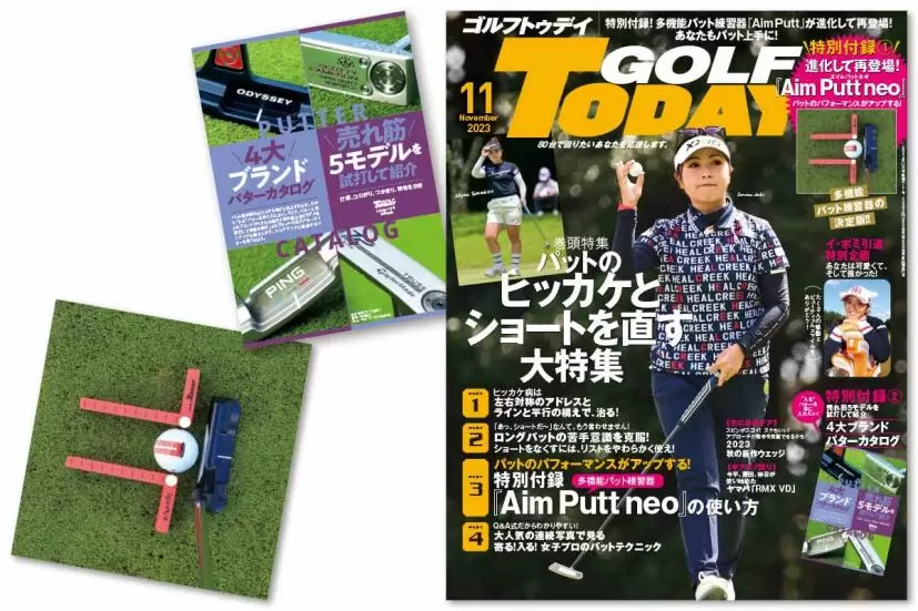 特別付録として、昨年に付けて大好評をはくした多機能パット練習器を進化させたAim Putt neoを全読者に提供、その使い方もパット特集のパート3に掲載!