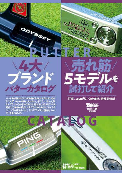 特別付録の2番目は4大ブランド、5モデルの完全カタログ。入るパターを手に入れたいゴルファー必見。試打して紹介しています。