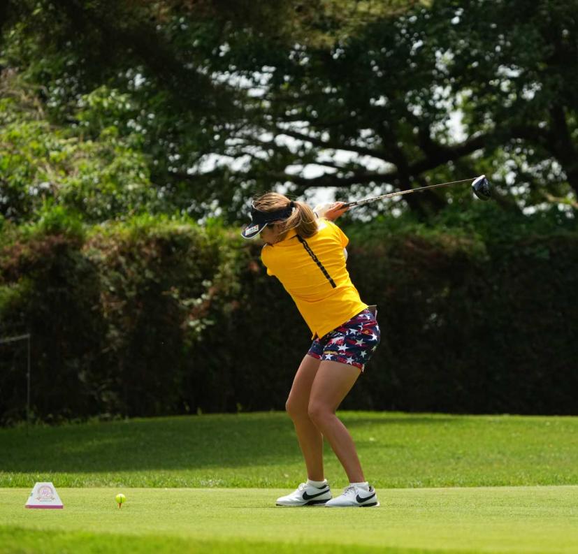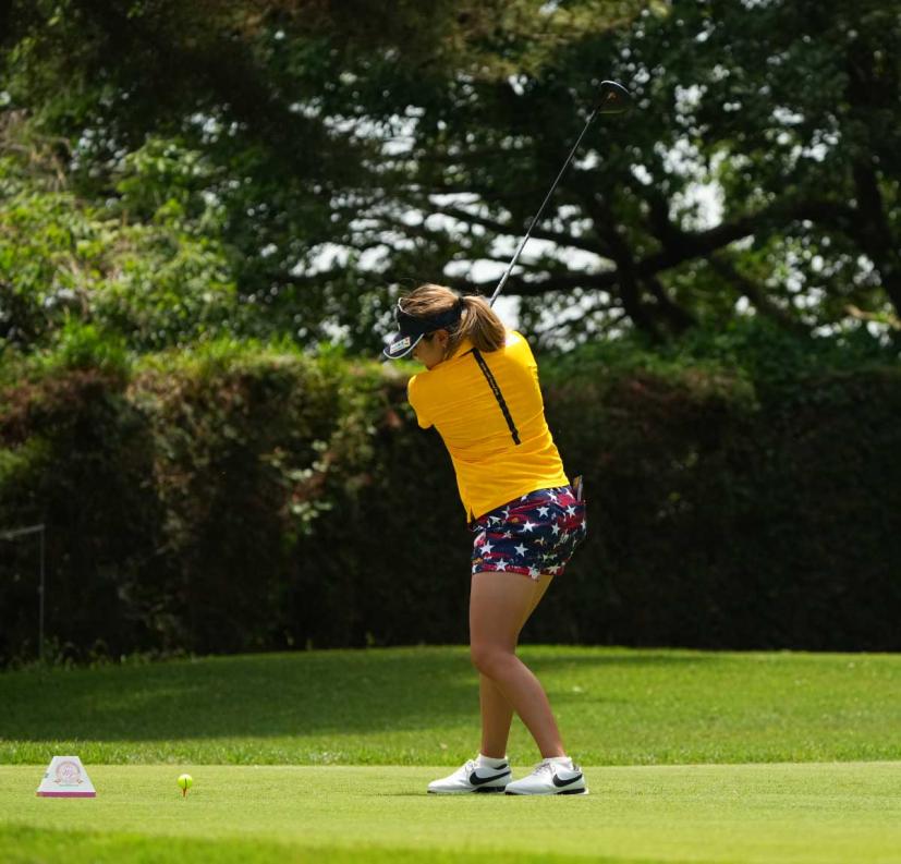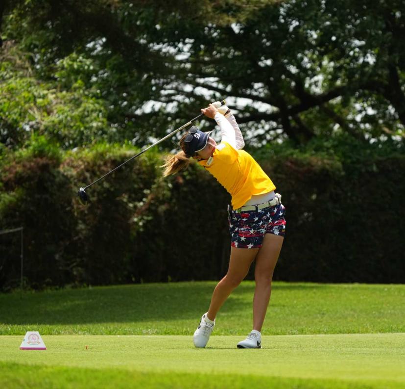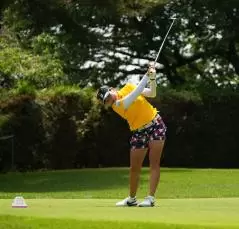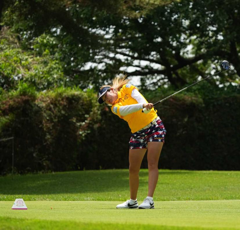 桑木志帆のドライバースイング(斜め前方)|フォロー①