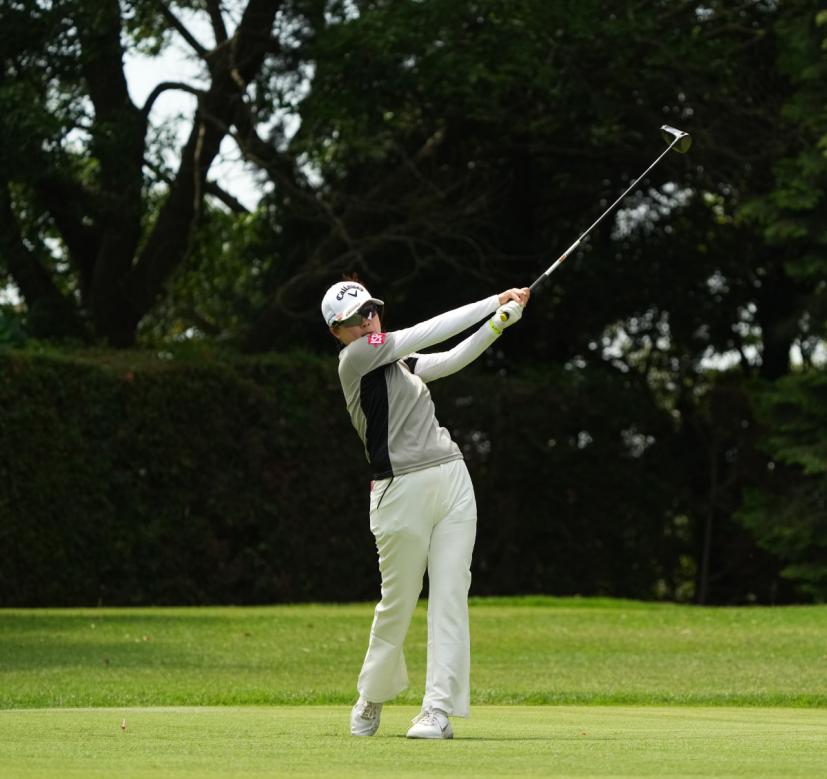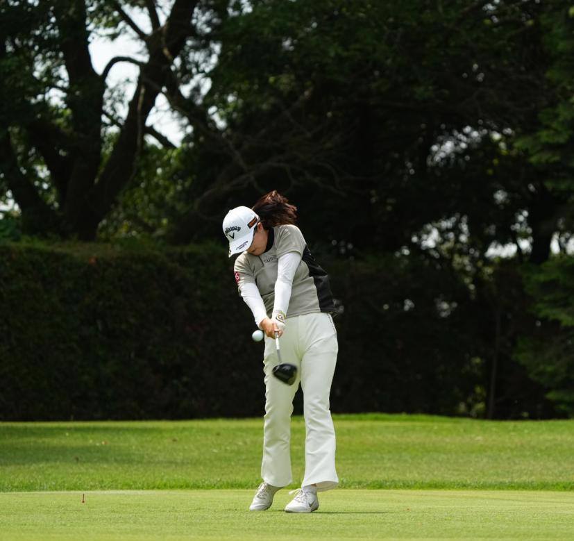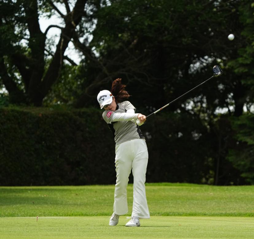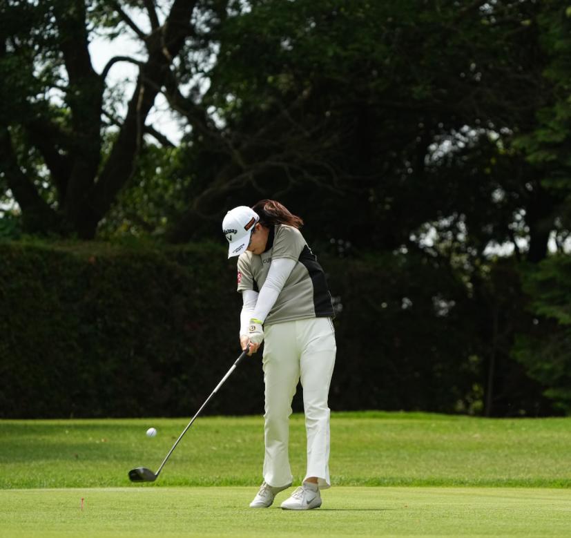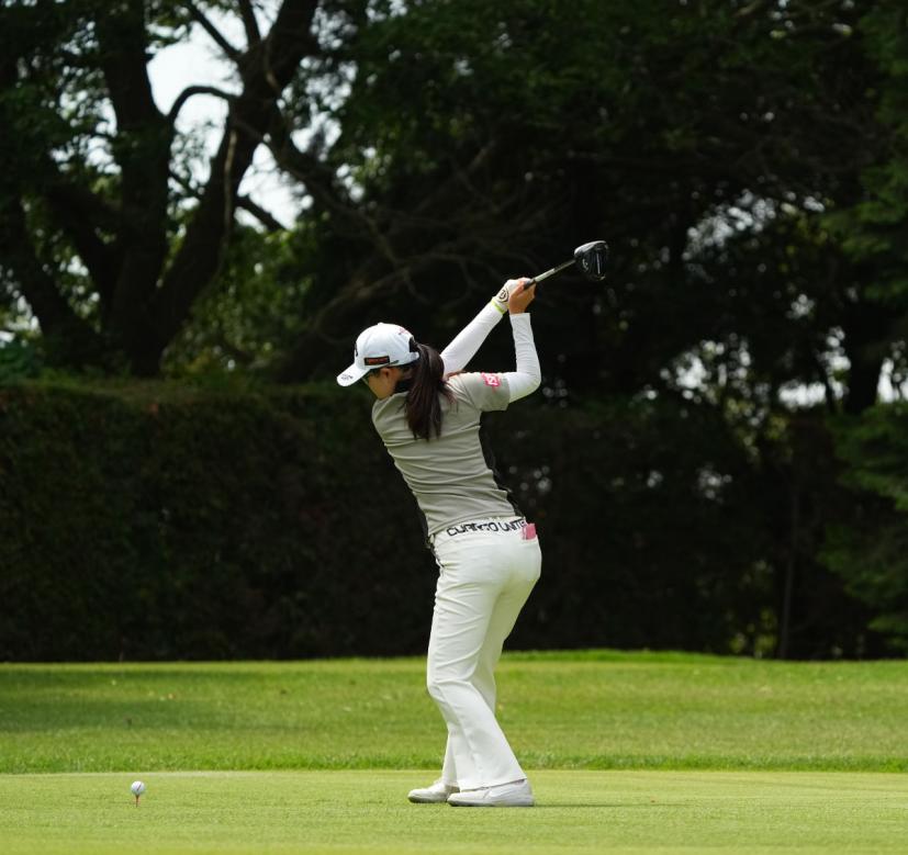 保坂真由のドライバースイング(斜め前方)|フォロー①