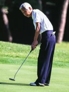 最初のホールで1メートルのパットが残る。入っても入らなくても、心臓に悪い。中部さんは持参している「救心」という薬を飲むことになる。中部さんでも大変な1メートルなのである。