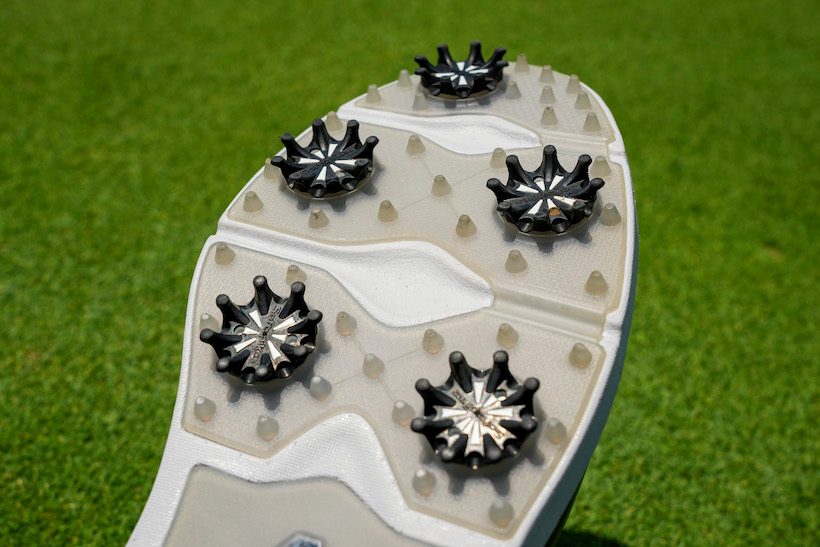 それから、通気性も良いようだ。ソフトレザーのアッパーのゴルフシューズなんて久しぶりに履いたので「蒸れそう」と心配していたのだが、プレー後によくある「蒸れたー!」という感覚はなし。とはいえ、通気性に特化したゴルフシューズではないので、ほどほどに靴中はポカポカである。