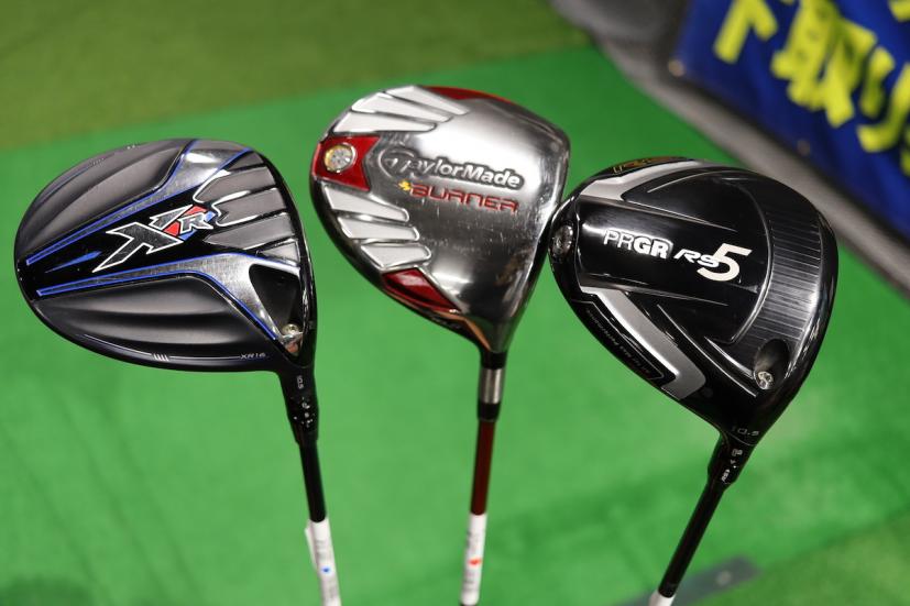 まずは、ドライバー選びから。ズラリと並ぶ中古ドライバーのコーナーから、名取さんと釘尾さんが選んでくださったのは3本。
