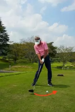 というのも、インパクトで手が目標方向に出るとフェースが開きやすいから。手が前に出るのを遅らせることで、フェースが開くのを抑えられ、かつヘッドがターンしやすくなってボールがつかまります。ヘッドが低い位置から入りやすくなるのもメリットです。