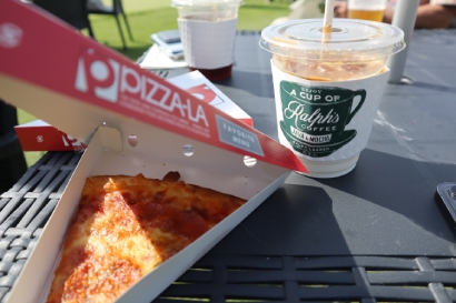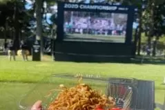 天気も気候も最高なこの時期に、ゴルフ場という最高のロケーションで食べるご飯は格別!多くのギャラリーがビール片手に、ピクニック気分で楽しんでいた。