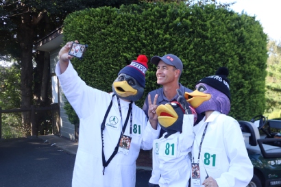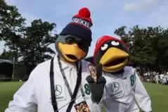 最後に、会場で一際目立っていたのがこちら。ゾゾチャン公式マスコットの「GOLFICKERS(ゴルフィッカーズ)」。2018年にゴルフ好きのクリエイターが結成したゴルフ同好会とされており、お茶目な見た目のアヒルのキャディに扮装したInstagramでの投稿が話題となり、2019年からゾゾチャンのオフィシャルマスコットに就任。今年の会場でも多くのツアープロとのセルフィーをし、Instagramに投稿しているので気になる方は要チェックだ。通常は会えないため、遭遇したギャラリーの多くが記念撮影をし、お礼のステッカーをゲットしていた。