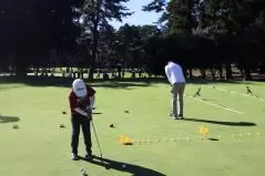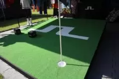 こちらのゾーンでは、子供も大人も楽しめるパター練習場を設置。クルマや恐竜、アヒルなどでパターエリアを設置することで子供も入りやすく、また、グリーンはしっかり同じ速さになっているので、大人も大満足。思わず長居してしまった、と急いで観戦に戻るお父さんの姿も。