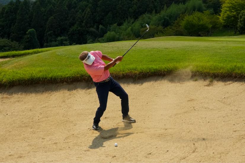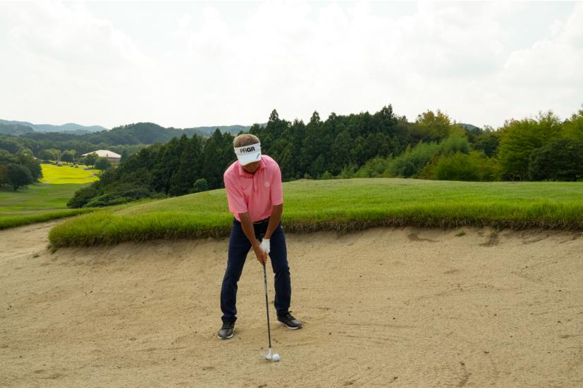 100切りを目指すには、ピンに寄らなくてもいいし、必ずしもピンの方向に打たなくてもいいですが、グリーン周りのガードバンカーからは一発で出すことが大事です。