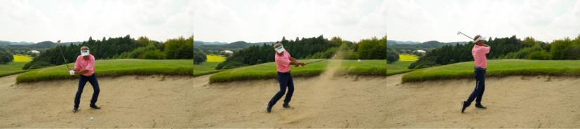 バンカーから出ない人の多くは、構え方を気にしたり、狙ったところにクラブヘッドを落とすことに気を取られて、肝心のスイングが疎かになっています。スイングが中途半端になっているので、せっかく正しく構えられても、狙ったところにヘッドを落とせても出ないのです。