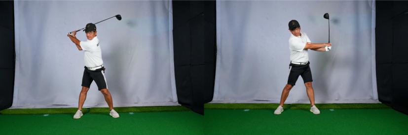 スイングは両足が支えることで正しく行われます。