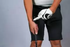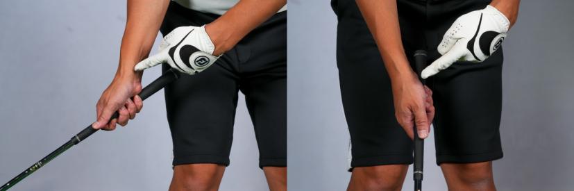 クロウグリップだと右手のコックが入らないのでいすぎを抑えることができます使。かといって固定されることもないのでクラブが動くようになります。