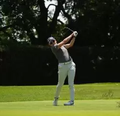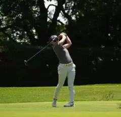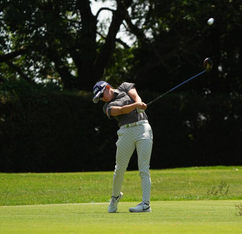 岩井明愛のドライバースイング(斜め前方)|フォロー①