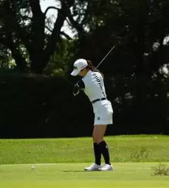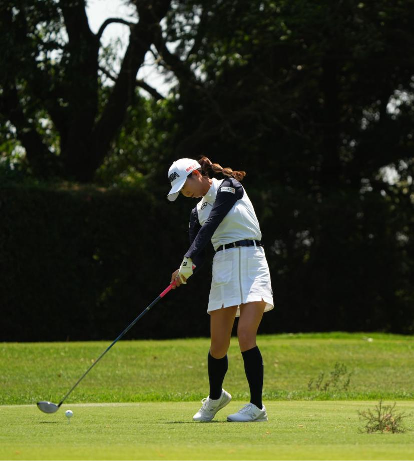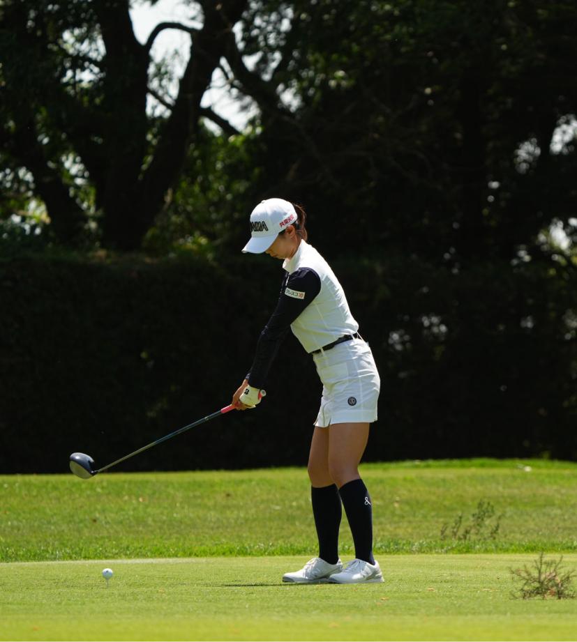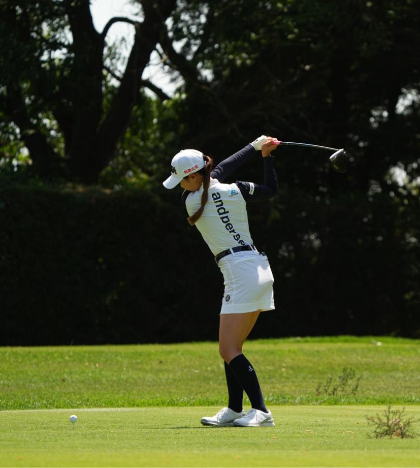 金澤志奈のドライバースイング(斜め前方)|フォロー①