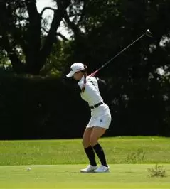 金澤志奈のドライバースイング(斜め前方)|フィニッシュ