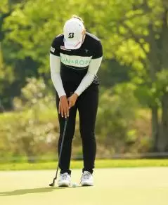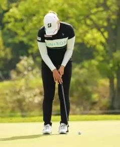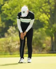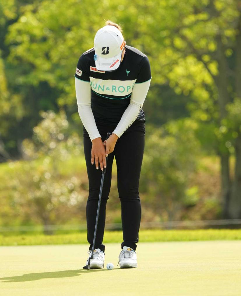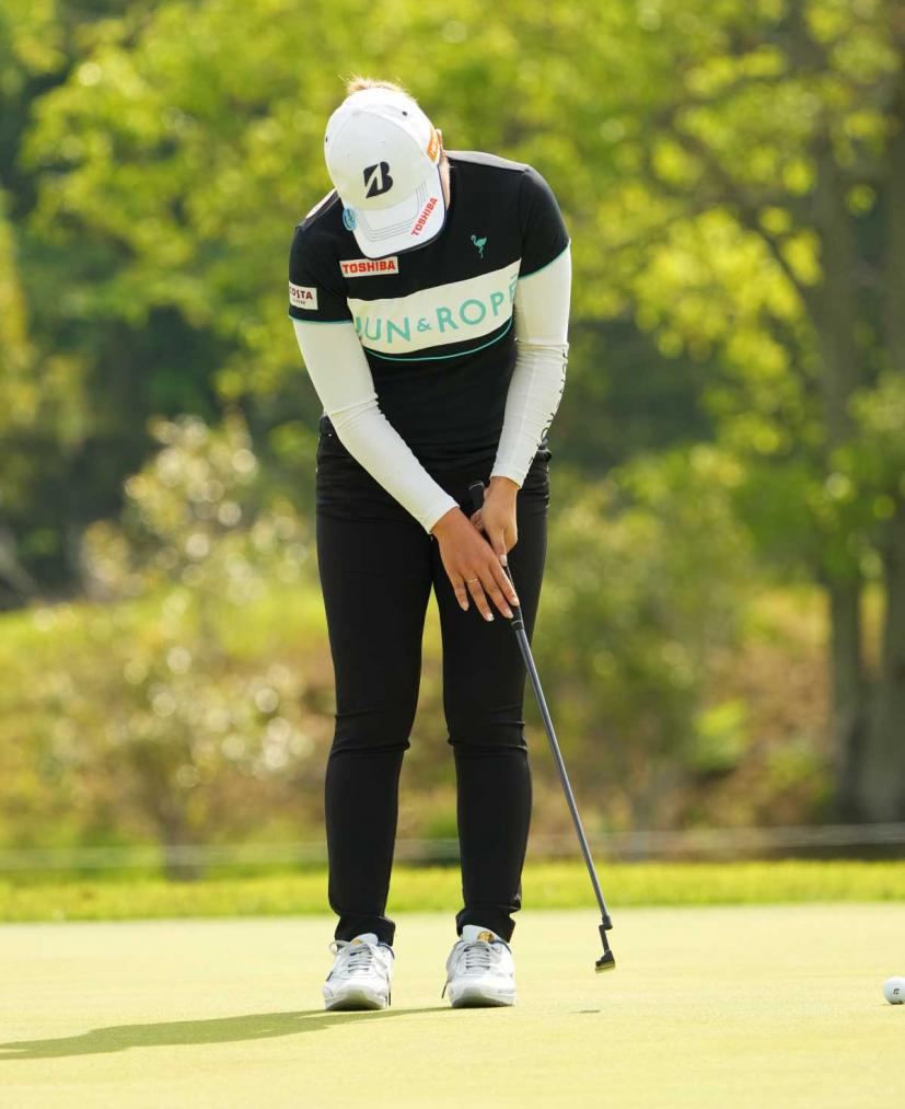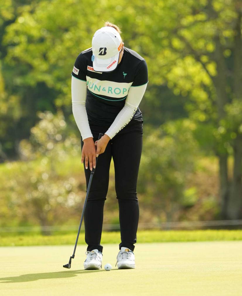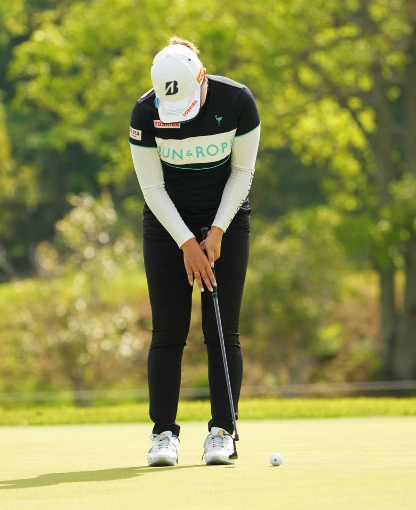 高橋彩華のパッティングストローク(正面)|フォロー③