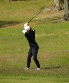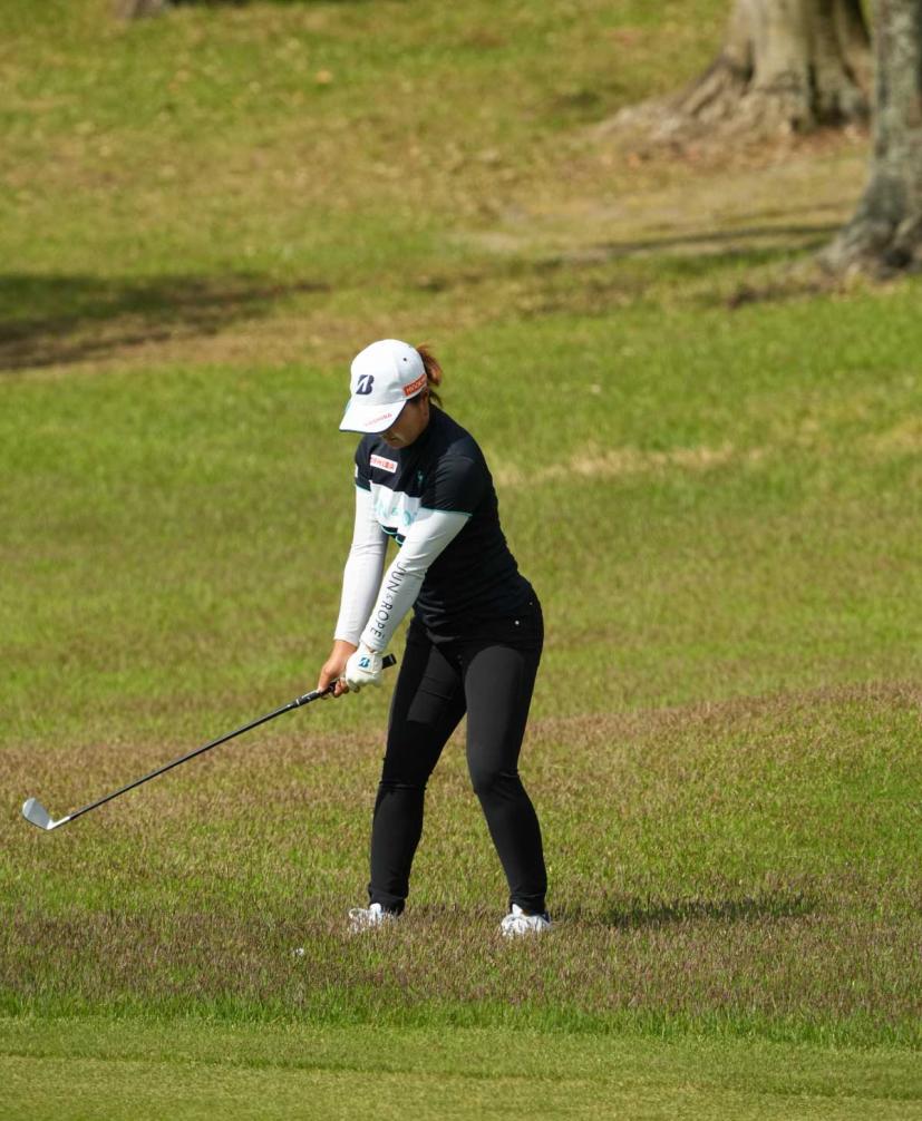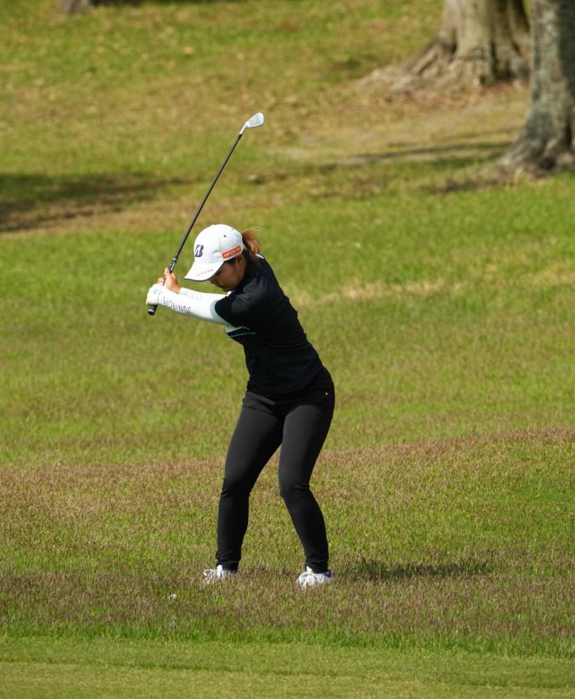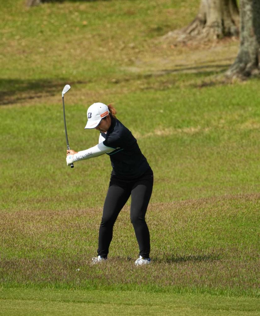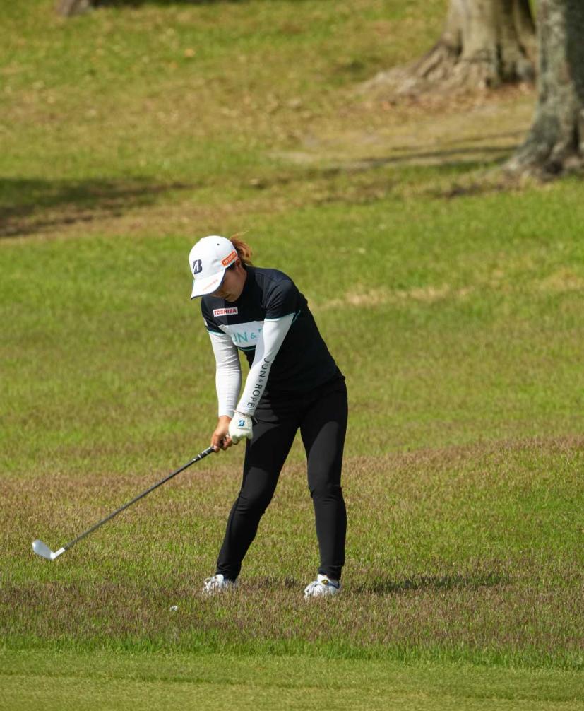 高橋彩華のアイアンスイング(斜め前方)|インパクト