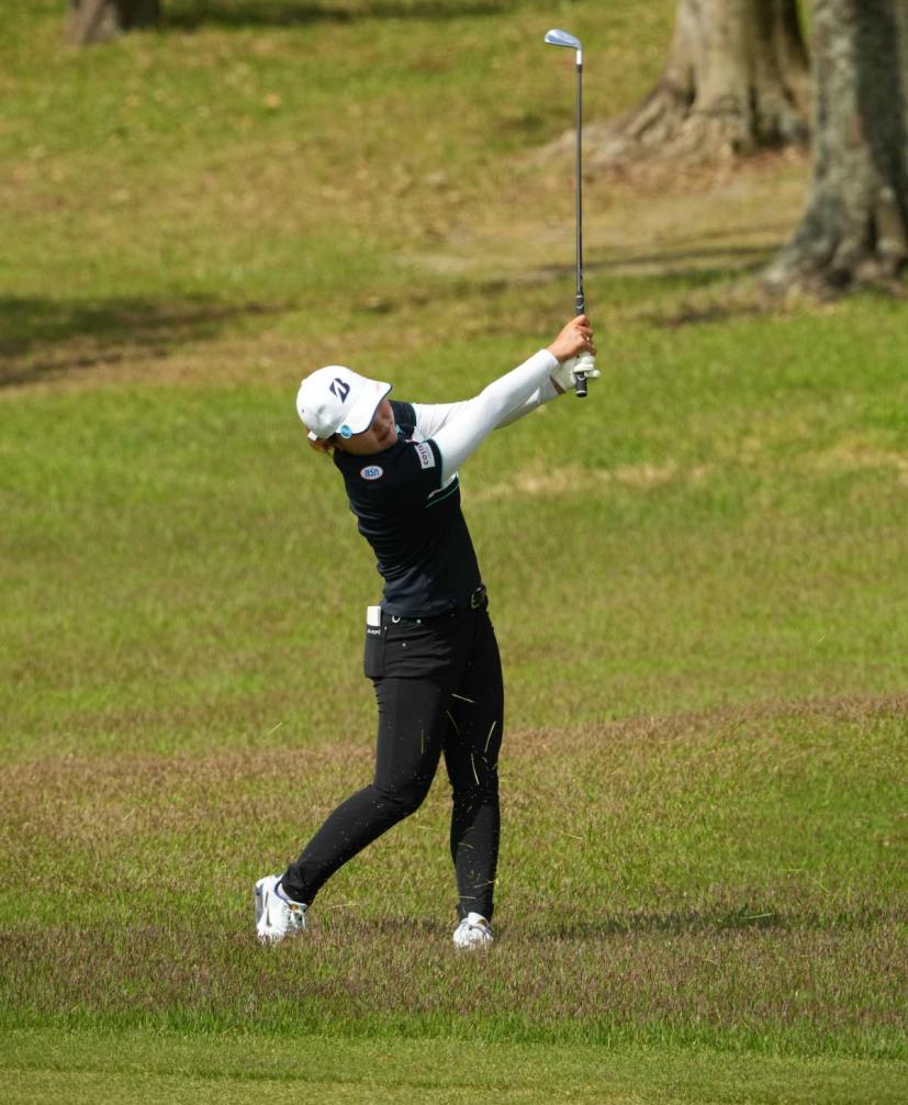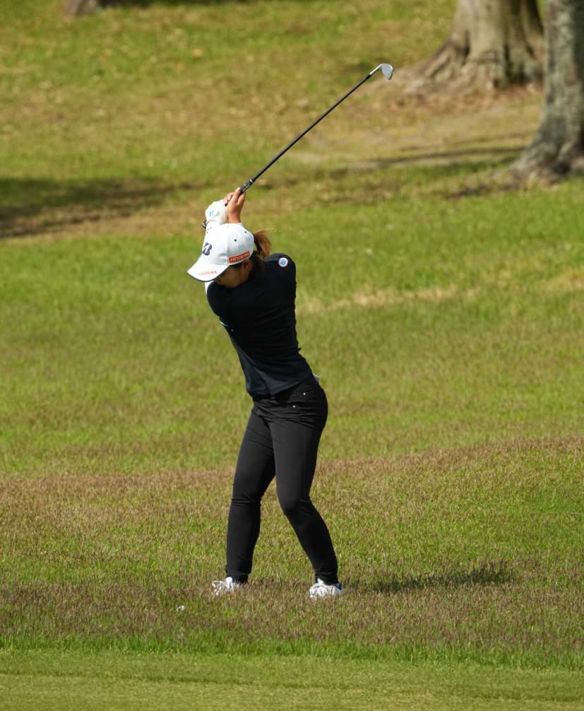 高橋彩華のアイアンスイング(斜め前方)|フォロー②