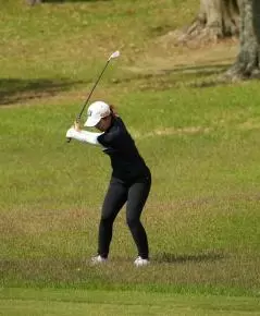 高橋彩華のアイアンスイング(斜め前方)|切り返し(トップ)