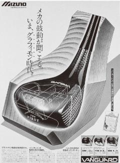 1982年8月1日にミズノが世界一番乗りで発売したカーボンウッド「バンガード」。自社の養老工場が24時間体制でヘッドを生産したという。