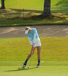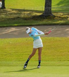 かねだ くみこ(スタンレー電気)1989年8月14日生まれ。愛知県名古屋市出身。3歳でゴルフを始め、8歳で「世界ジュニア選手権」を制するなど数々の記録を残す。2008年にプロ転向し、2011年の「フジサンケイレディスクラシック」で初優勝。22年「樋口久子 三菱電機レディスゴルフトーナメント」で11年189日ぶりのブランク優勝を飾った。得意クラブはウェッジ、パター。趣味はショッピング。