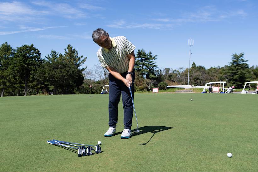 というのも、モデルによってはフェース面の開閉が小さいものもあるから。自分の真っすぐ感とパターが持っている真っすぐの感覚が合えば第一段階クリア。打ち出したい方向に打てるからこそ距離感の収束にもつながるので、まずは真っすぐです。