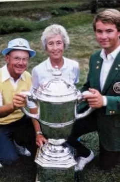 ラブ20歳。1985年ウォーカー杯出場時に両親と。母ペンタ(2年前94歳で他界)もゴルフ上級者だった。米ゴルフダイジェスト2012年10月号より。