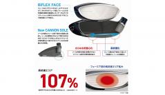 センターからオフセンターにかけてのショット時のフェースのたわみを大きくすることで、高初速エリアを拡大させた新開発テクノロジー「BiFLEX FACE」と、 “高打ち出し+高初速”を可能にする「New CANNON SOLE」の組み合わせにより、高く、力強い弾道で、より大きく飛ばすことができる。