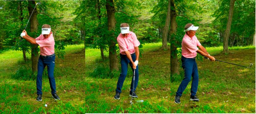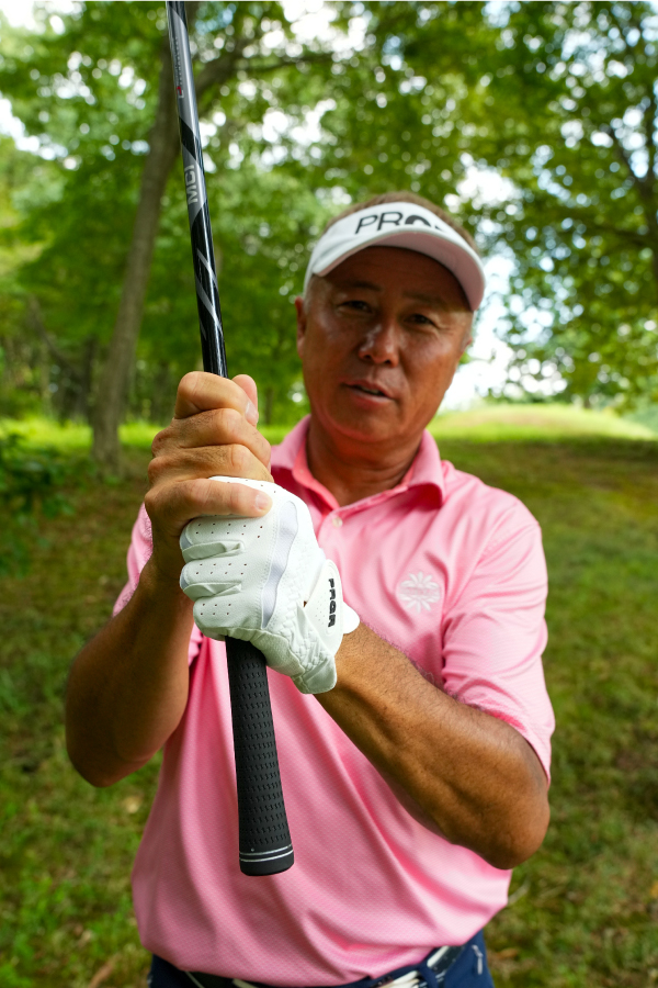 3Wで低く抜く場合には、シャフトを持つくらいクラブを短く持つ。