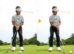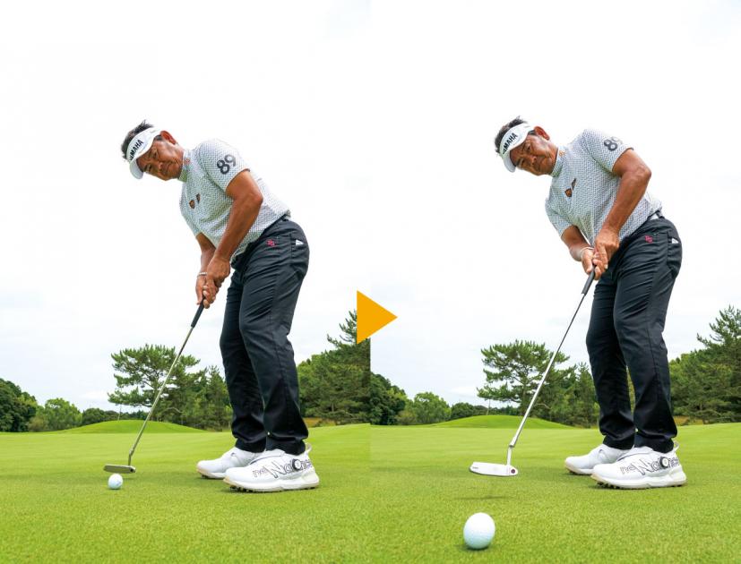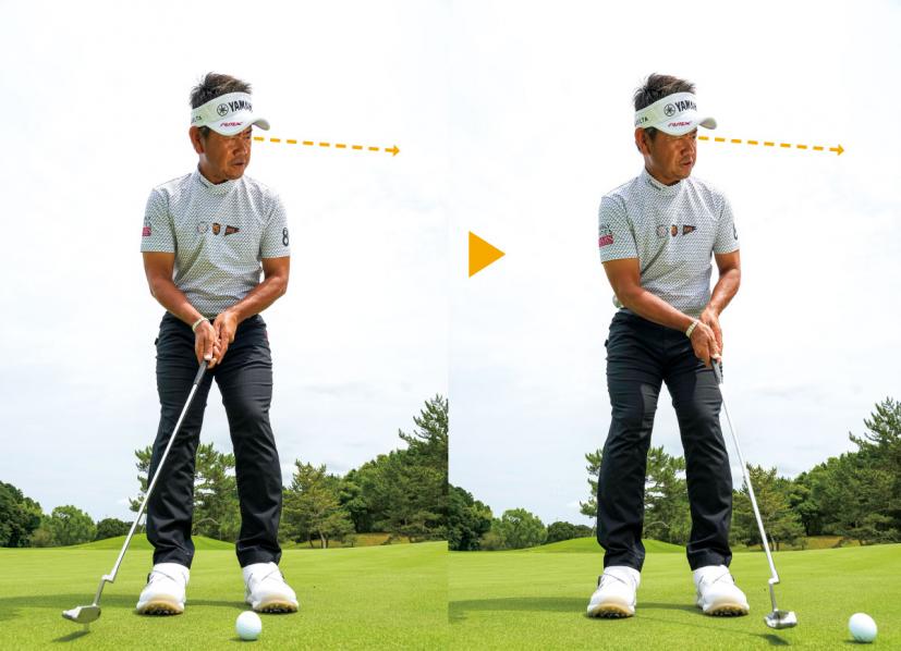 この練習をくり返すと、意識がフォロー側に向くため、テークバックが気にならなくなる。加えてフォローでヘッドが低く長く出るぶん、方向性がよくなります。