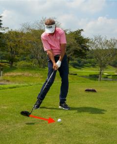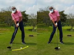 ティアップを低くすると、下からヘッドを入れにくくなる。というより、ヘッドを上から入れないとダフりそうなのでスイングしづらくなります。「ヘッドが上から入る=上から下に振るスイング」ということになるので、極端なインサイドアウト軌道が緩和されます。