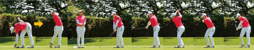飛ばしたいからといって、ティアップの高さを変えず、バックスイングもあえて大きくすることはない。インパクトからフィニッシュまでは加速しながら振り抜くイメージを持つだけだ。