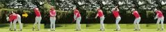 下半身に力を入れ、腕や肩の力をできるだけ抜いてクラブを振り切る