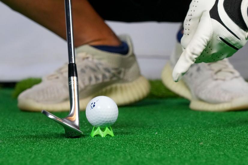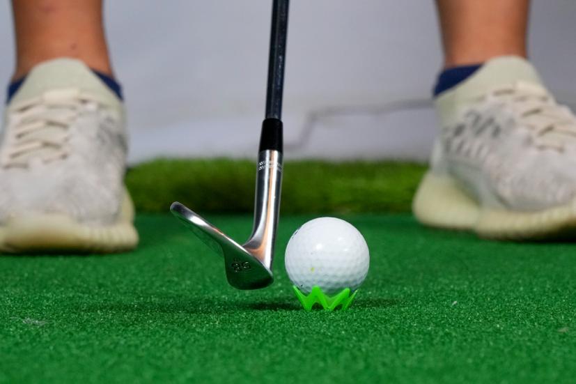 ボールの浮き具合によってヘッドの位置を変えてアドレス