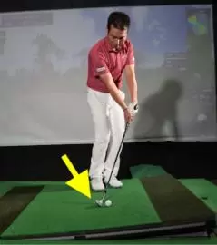 スタンス幅を狭めて立ち、ボールを右に置いて打った場合、クラブヘッドを傾斜にぶつける感じになる。