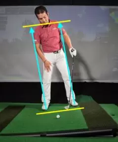こいうったデメリットを排して確実にグリーンに乗せるには、適度なスタンス幅で傾斜に沿って立ち、斜面に対してレベルにストロークすることです。