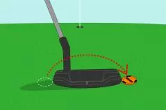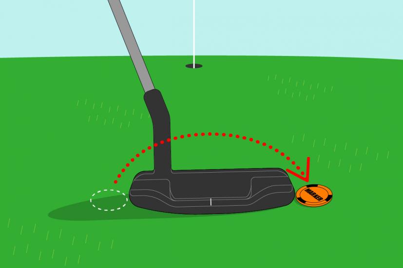 (2)目印方向にパターヘッドを合わせて、ヘッド1個分ボールマーカーをずらす