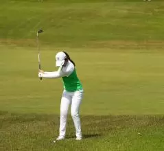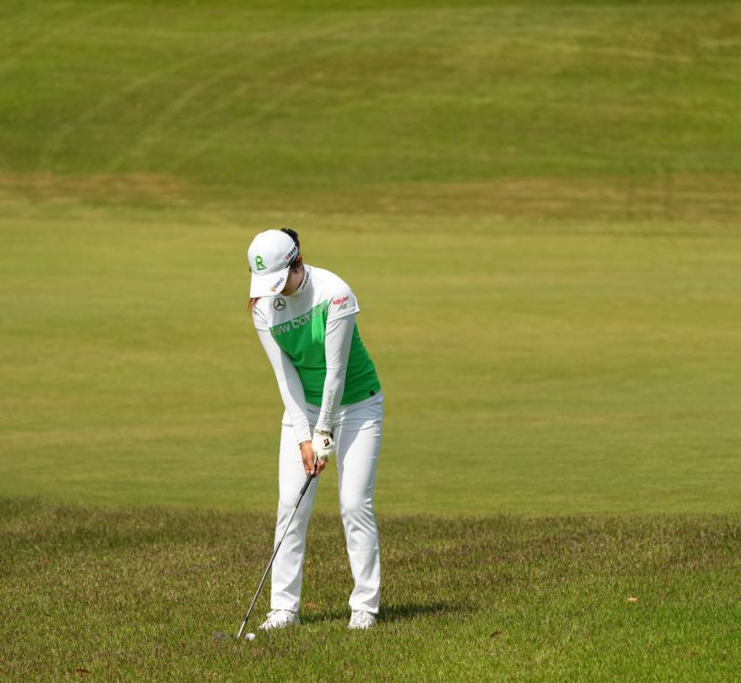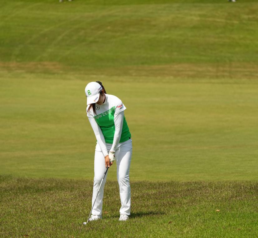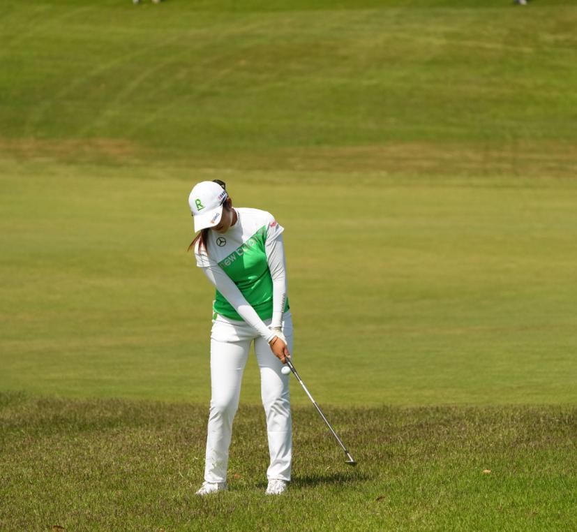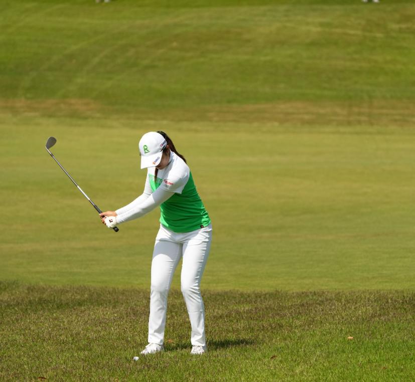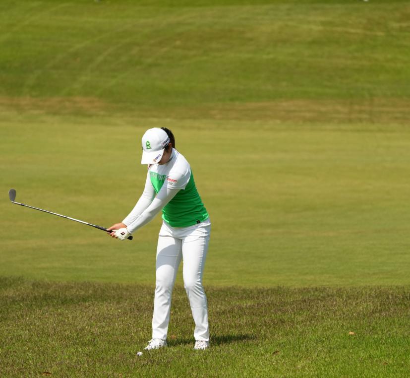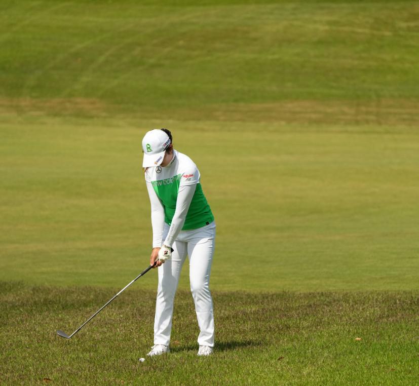 稲見萌寧のウェッジスイング(正面)|インパクト