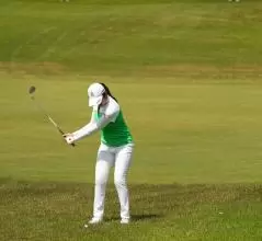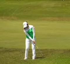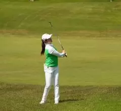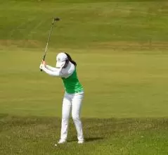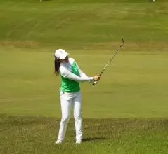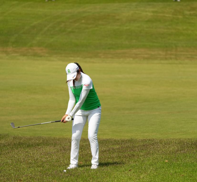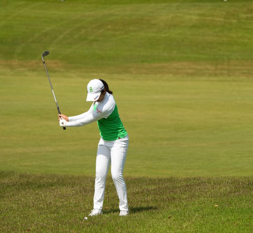 稲見萌寧のウェッジスイング(正面)|フォロー①