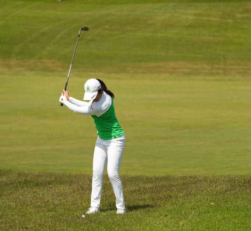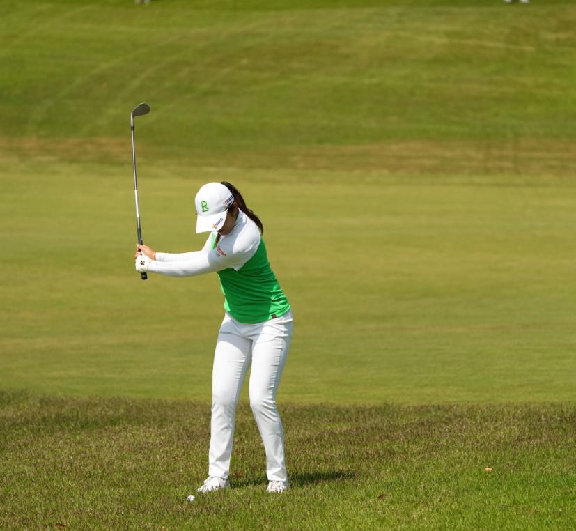稲見萌寧のウェッジスイング(正面)|バックスイング②
