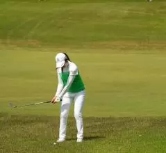 稲見萌寧のウェッジスイング(正面)|バックスイング①