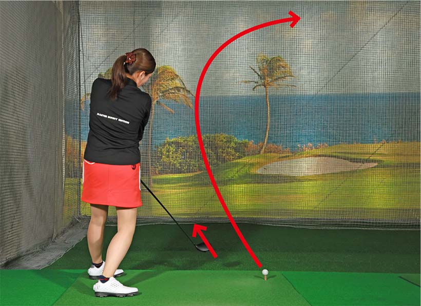 そうなると今度は左を向きたくなるのがゴルファーの心理。その結果、クラブを左に引っ張るように振り抜くためにアウトサイドインのカット軌道になり、いったん目標の左に出て途中から右に急カーブするようなスライスが出てしまうのです。スクエアに構えると右プッシュ系のスライス、それを嫌がって左を向いて構えたらスライスが余計ひどくなるという悪循環に……。