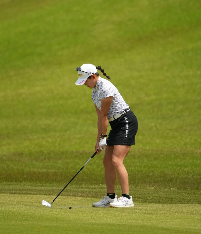 いわい ちさと(Honda) 2002年7月5日生まれ。2021年のプロテストに合格。2023シーズンは、双子の姉 ・岩井明愛と”岩井ツインズ”で「双子最終日最終組」で優勝争いを実現させ、自身も2勝を飾り大活躍の年となった。得意クラブはパター。趣味はピアノ。