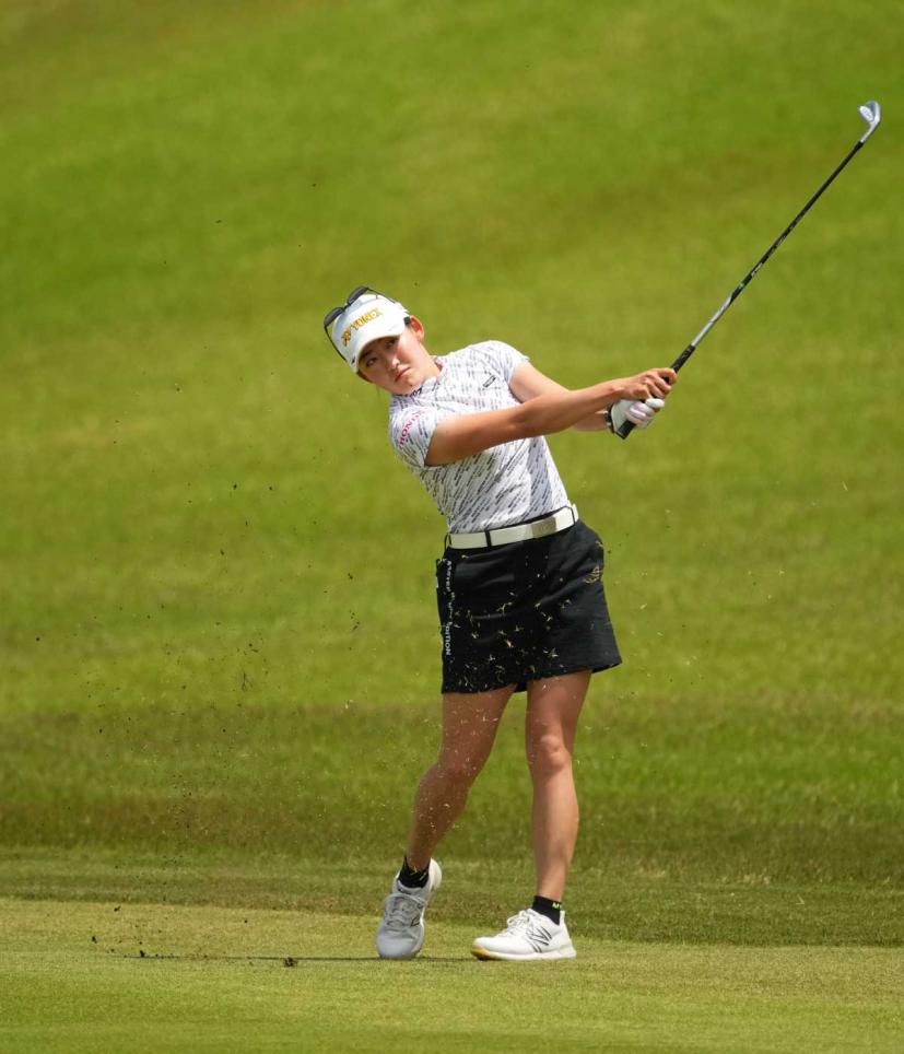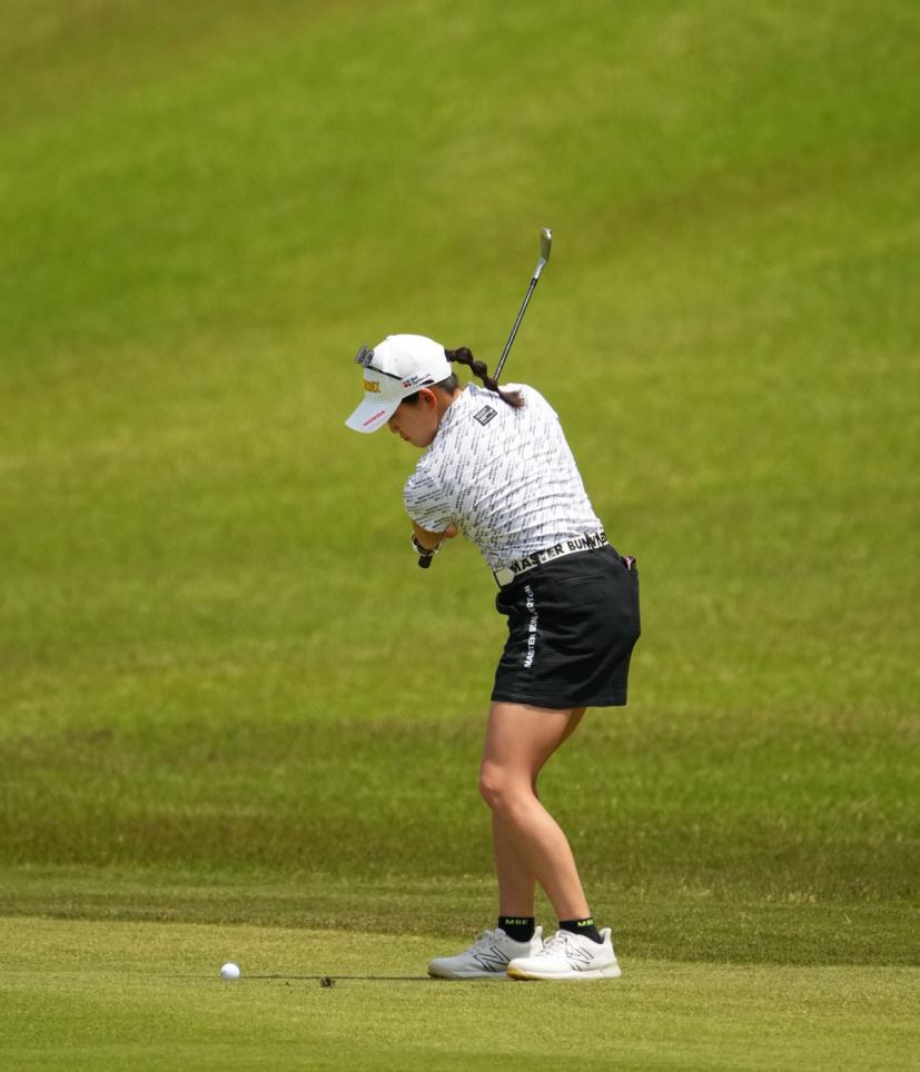 岩井千怜のアイアンスイング(斜め前方)|フォロー①