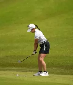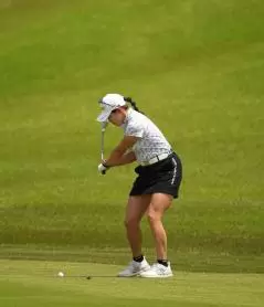 岩井千怜のアイアンスイング(斜め前方)|インパクト