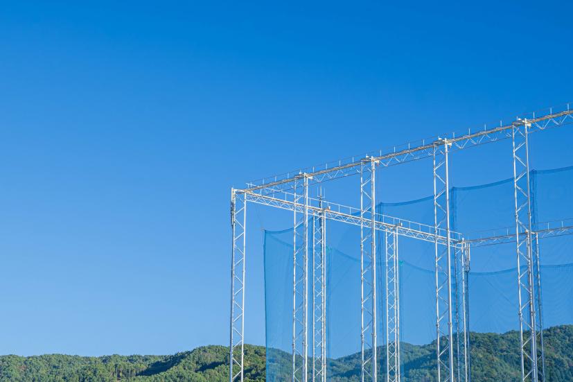 (1)アプローチ練習用のマットとネットを用意して、左右の片手打ちをする