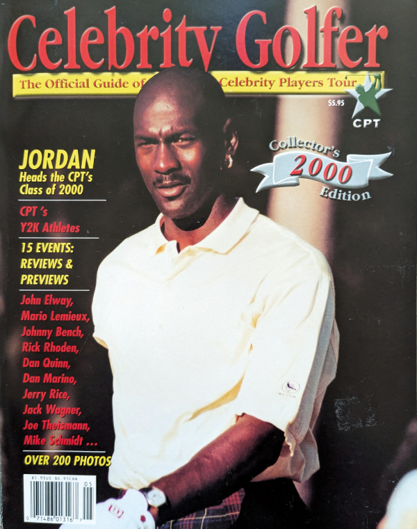 雑誌セレブリティゴルフの表紙になったマイケル・ジョーダン。NBA現役時代からセレブゴルフツアーに出場。PGAツアーのプロアマ出場やライダー杯へも副主将やアドバイザーとして米チームに同行(今秋を除く)。会員番号はNBA栄光の背番号に敬意を表し#0023。